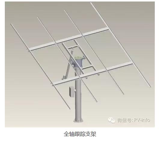 光伏支架分為:固定式支架、可調(diào)式支架、跟蹤式支架。跟蹤式支架又分為:全軸跟蹤、斜單軸跟蹤、平單軸跟蹤三個類別。
